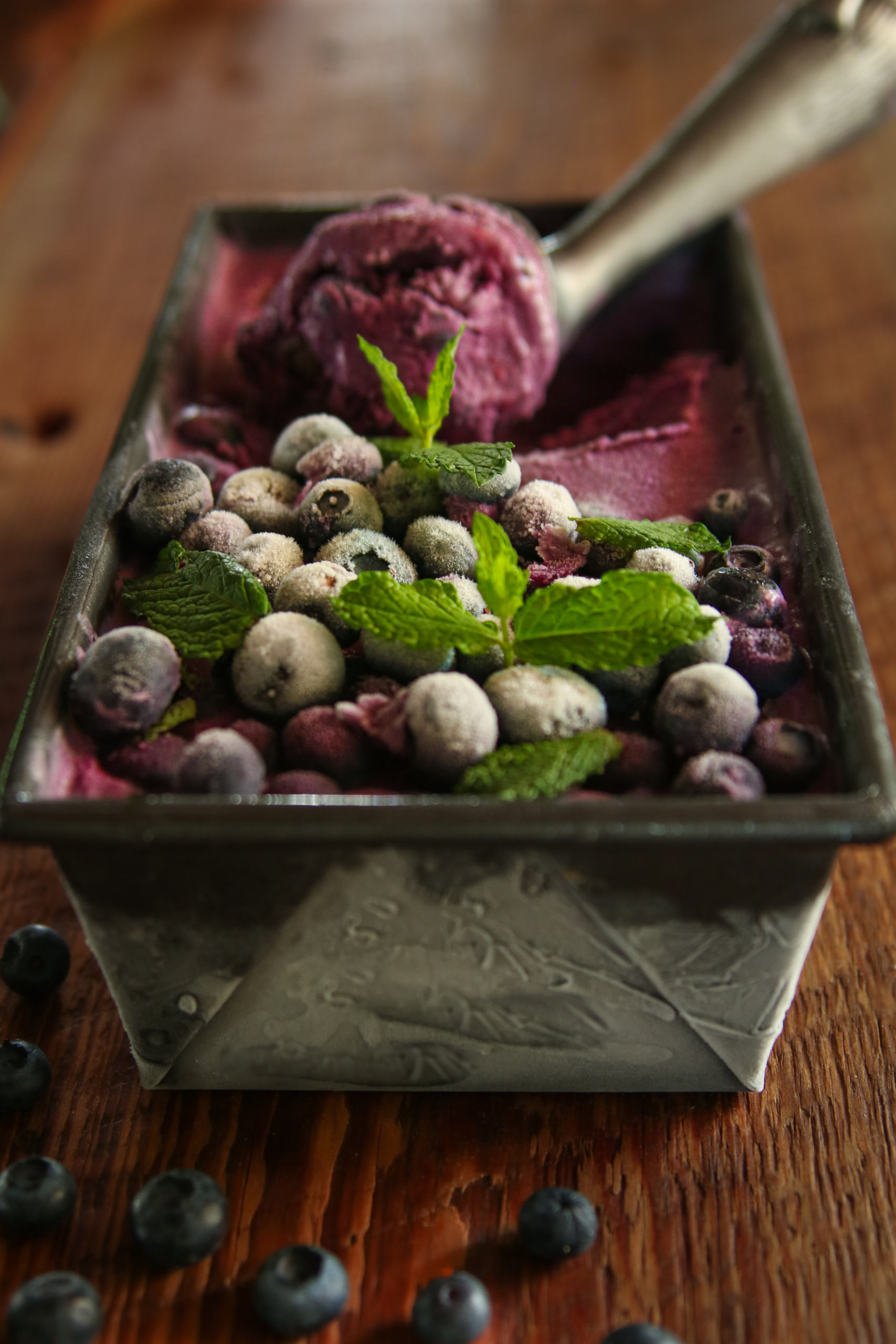 It’s berry season here in Upstate, New York so what better way to make ice cream than with blueberries? What I love about our recipe below, is that you can replace the blueberries with your fruit purée of choice or add-in your favorite crumbled craving! And have no shame for piling on those classic rainbow sprinkles, or as we called them growing up in New Jersey, jimmies. Happy ice cream making…