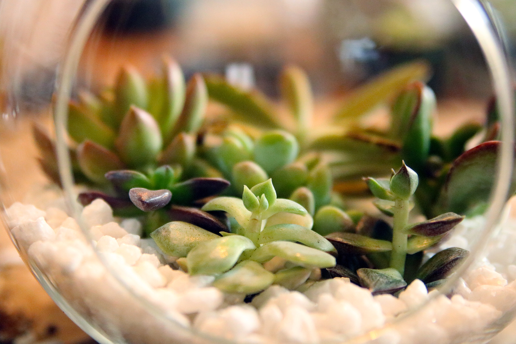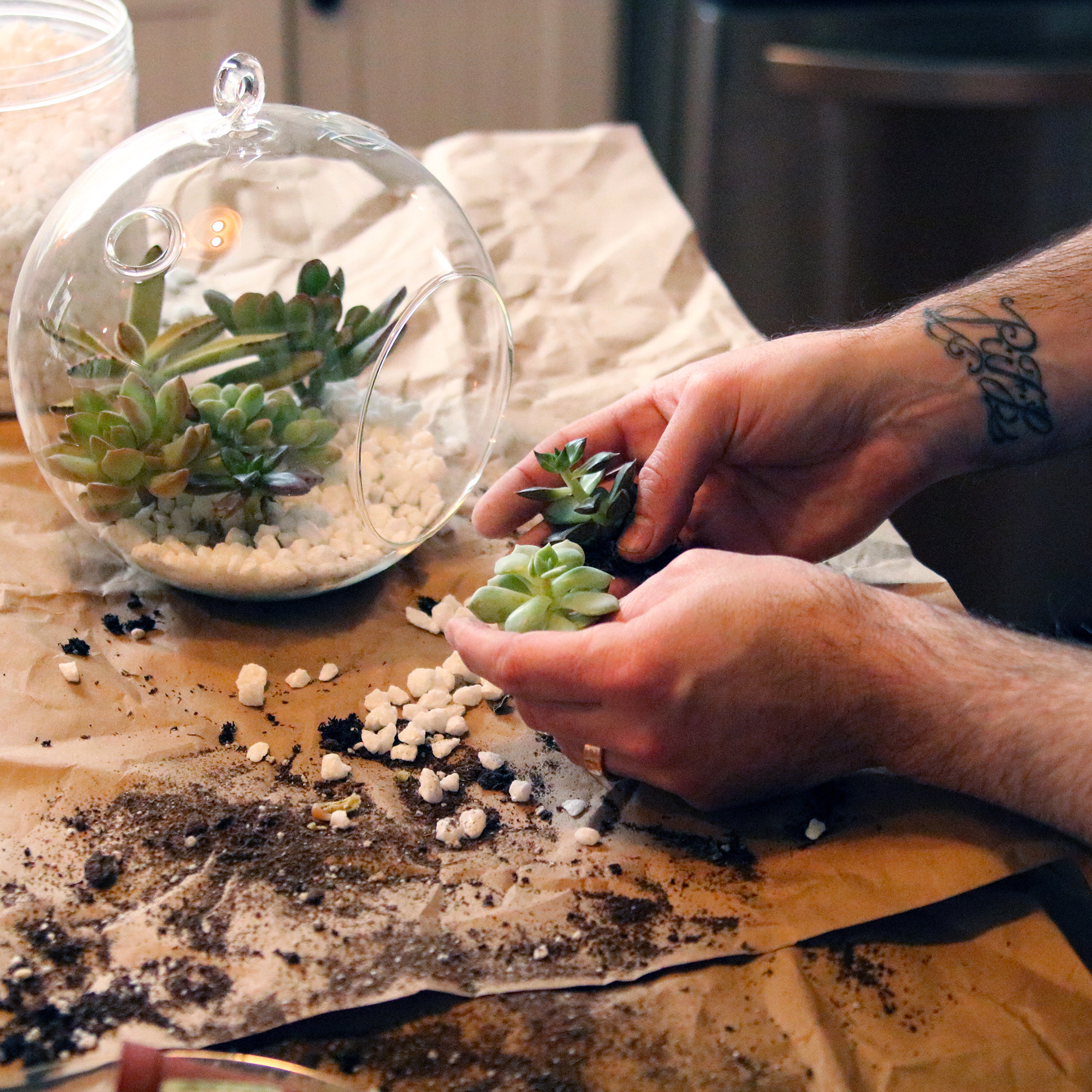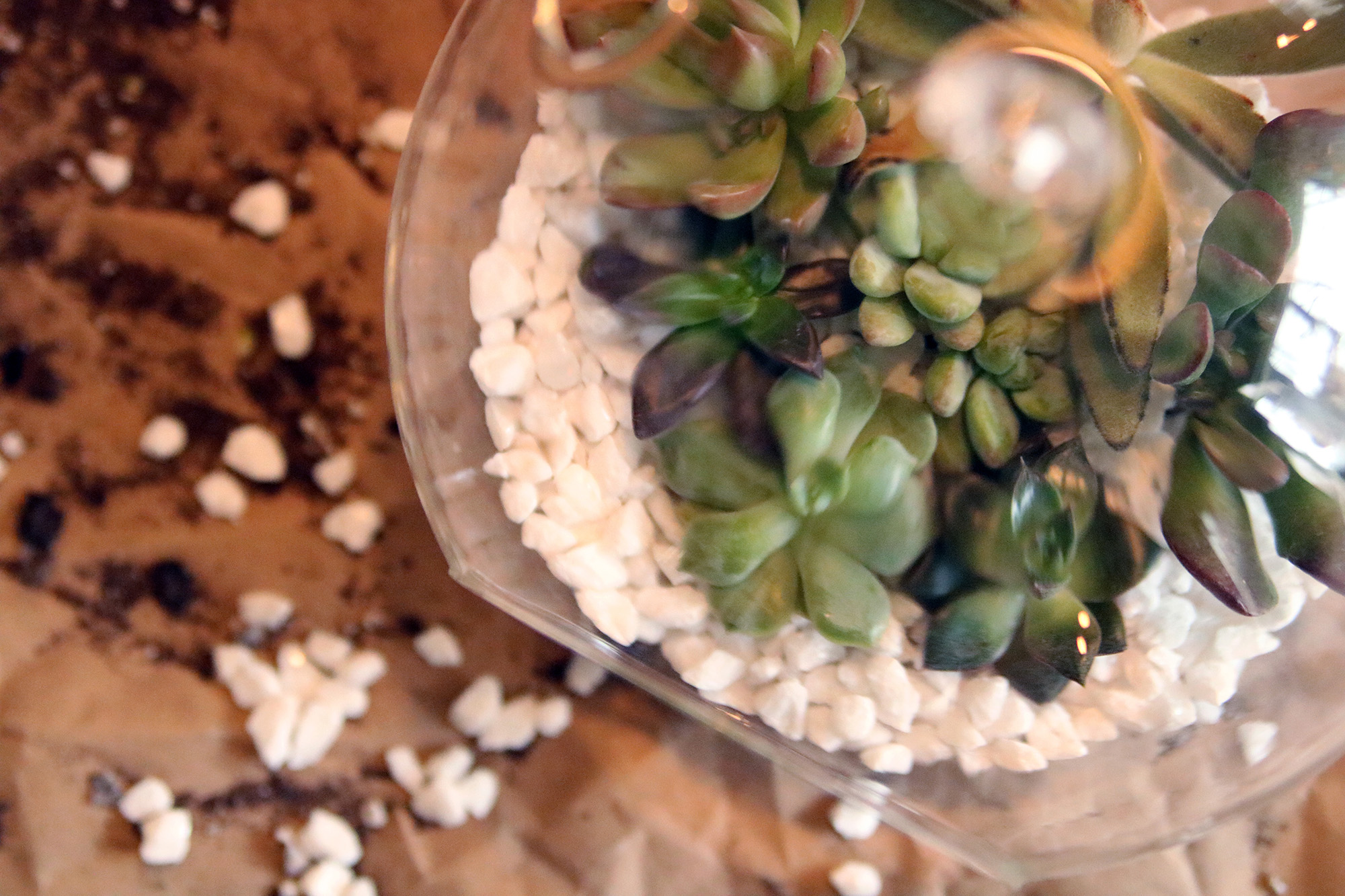 - We used white marble pebbles for easy drainage. Sprinkle a handful of pebbles at the base of the globe.