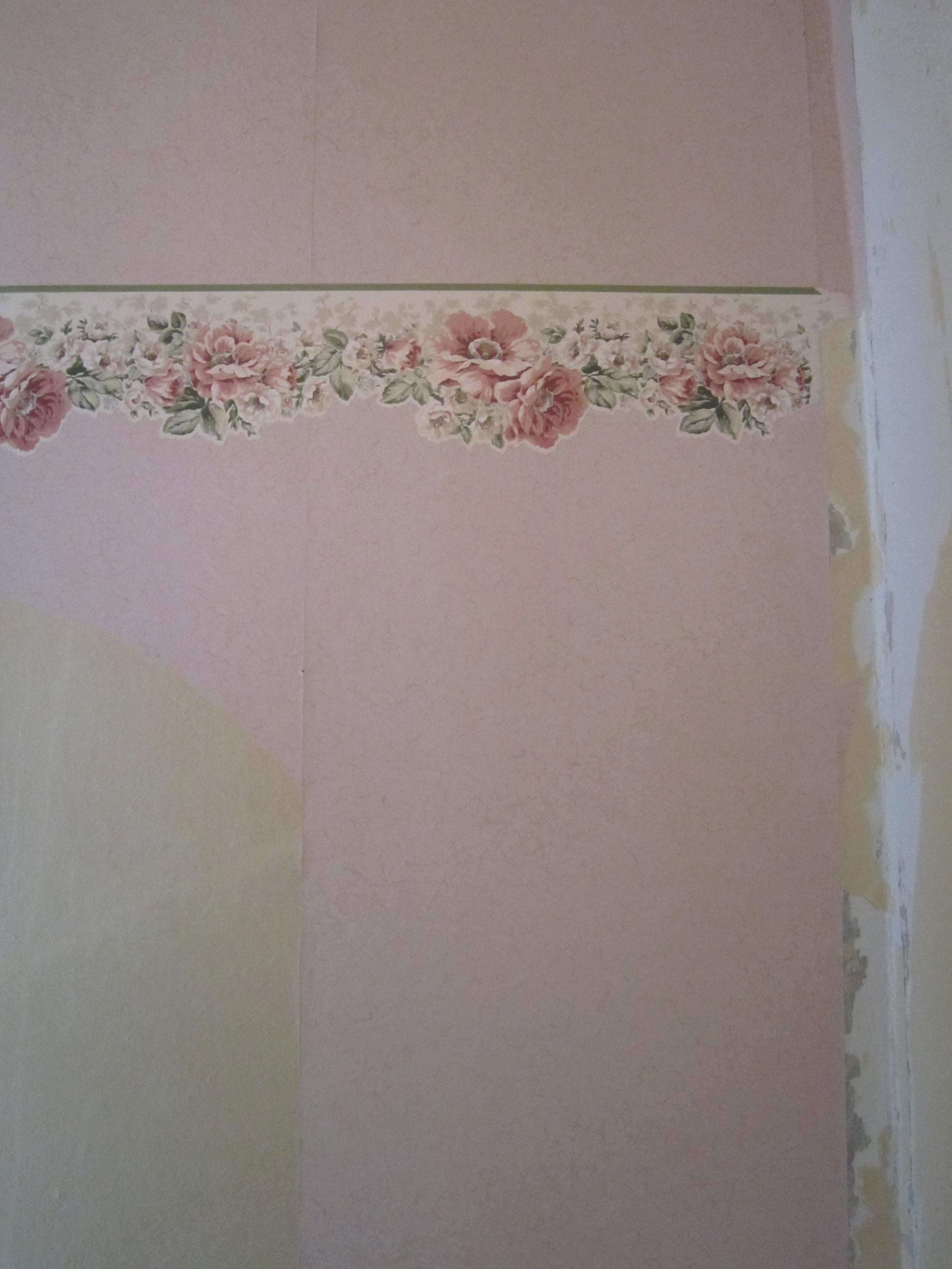 Step 4: After all the paper is removed and the walls are completely dry, patch up and holes or cracks and sand the entire surface until smooth enough to paint. Don’t judge me! But after all the work getting the original wallpaper off I decided to put up fabulous vintage toile wallpaper.