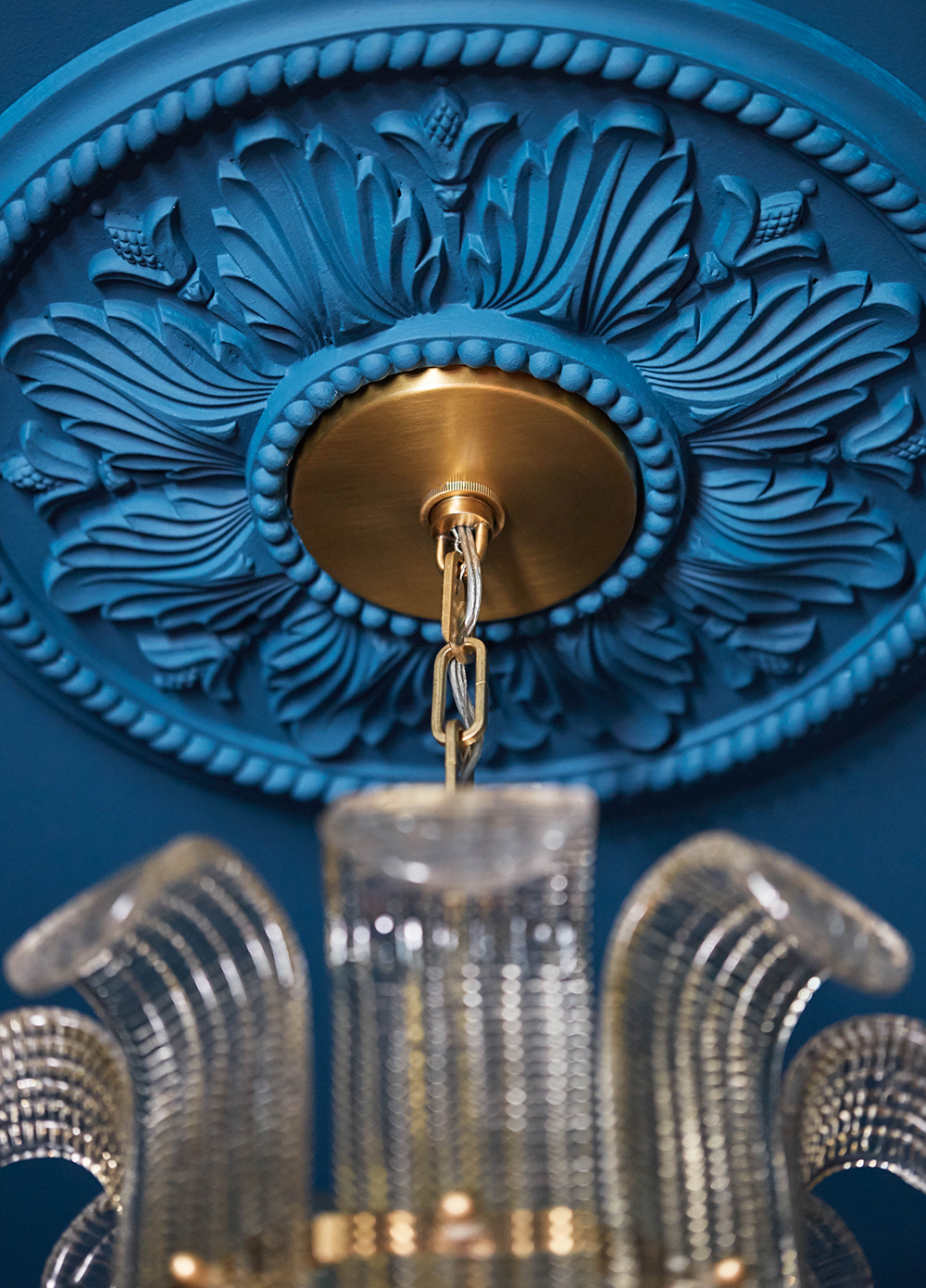 This room is stunning! the ceiling colour and moulding around the gorgeous chandelier is just beautiful!