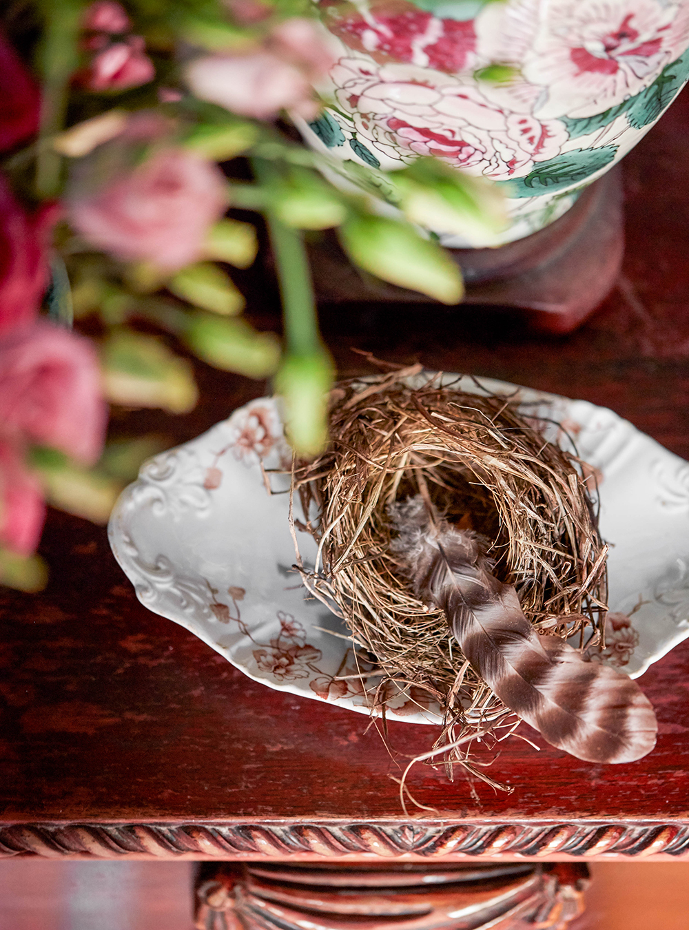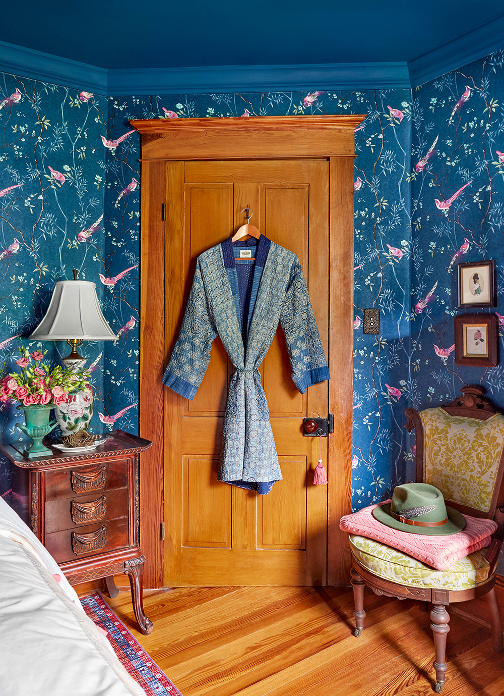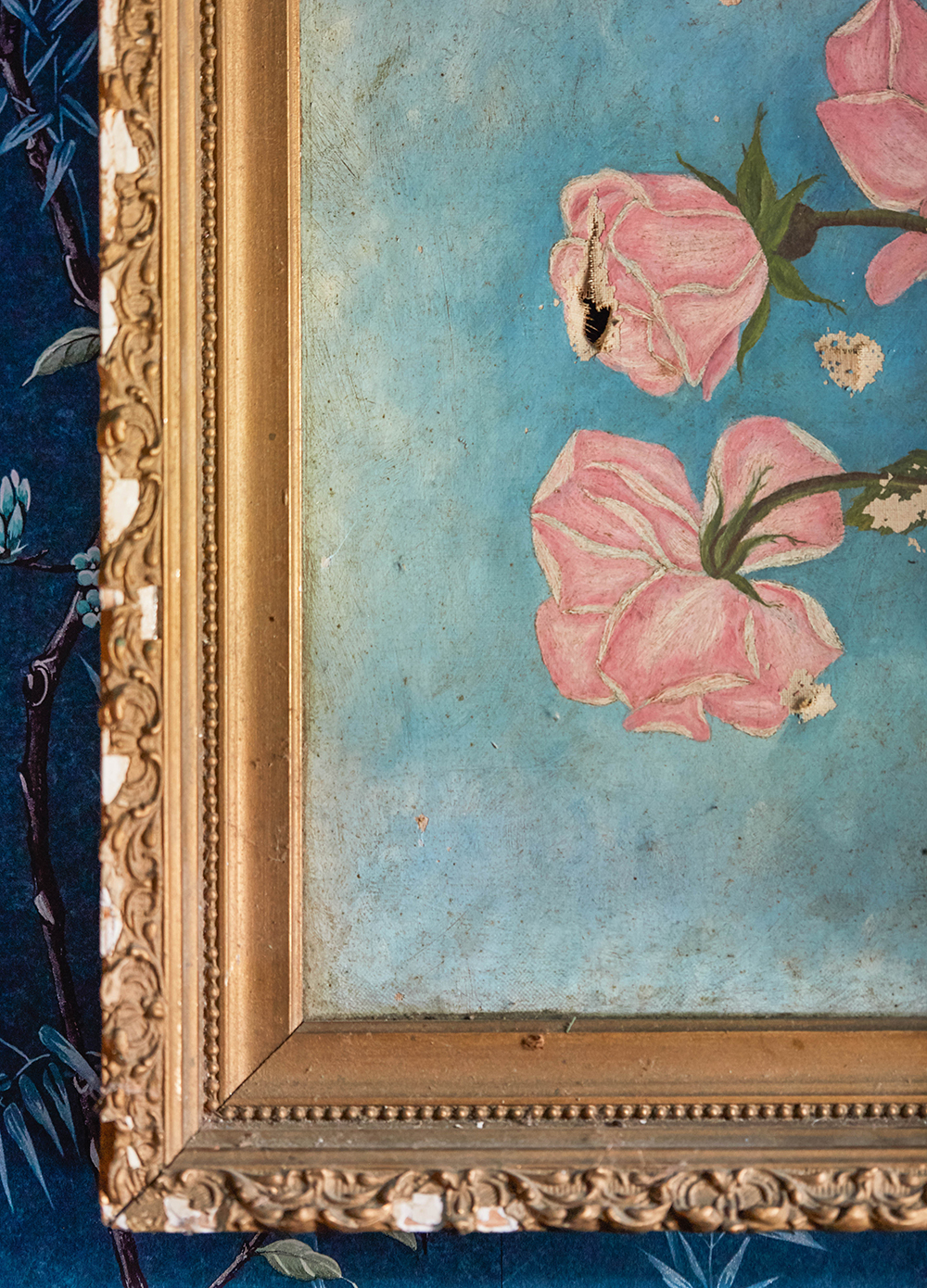 At first, I was in a panic for artwork. I’m always drawn to vintage botanicals and actually found a bunch of them that I collected at yard sales in our barn. I quickly realized that we didn’t need much artwork on the walls because the Chinoiserie wallpaper was so beautiful on its own.