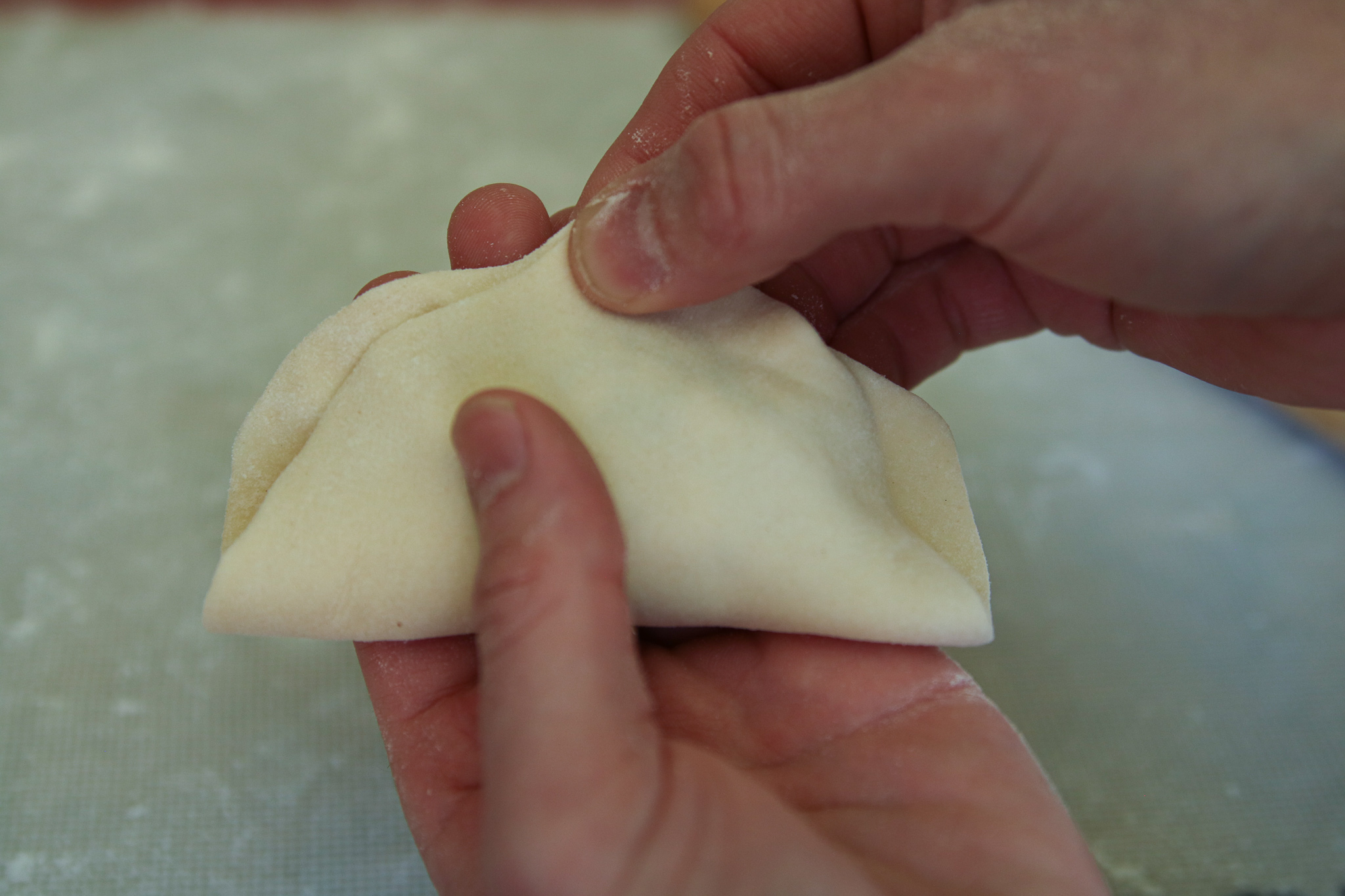 - There are several ways to fold a momo and you can find a great video above to help you out. For the classic crescent momo: After adding your mom filling to the center of your dough wrapper, fold the dough in half and pinch to close. Use your thumb to pinch small folds on the round edge of your momo (the edge should look like roping). You can leave the crescent shape as is, or pinch the two ends together to form a circle.