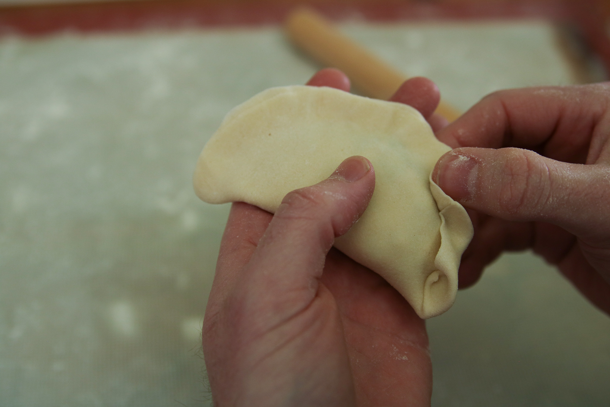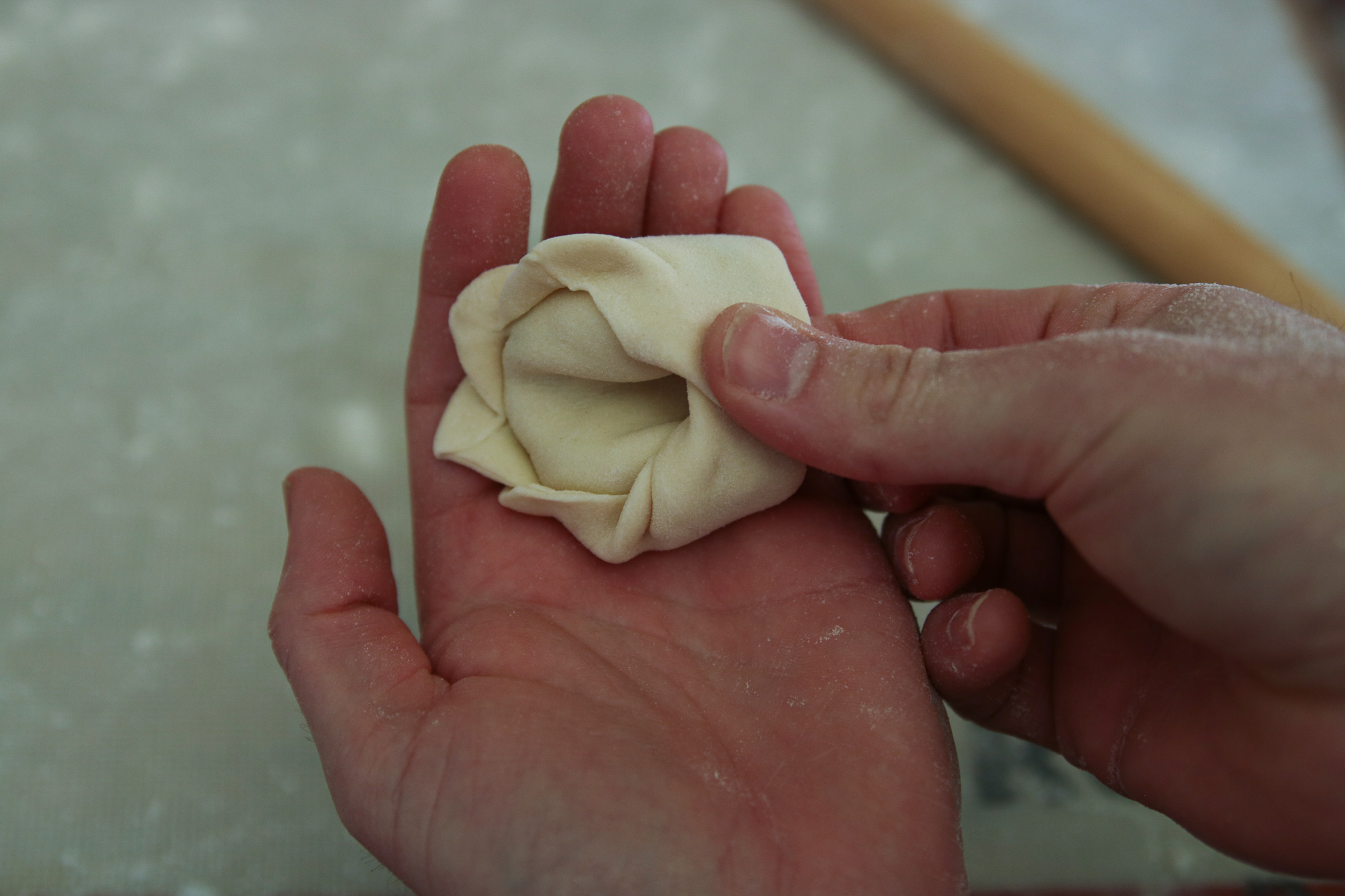Today we’re making ramp and goat cheese filled momos. Ramps (i.e., wild onions) are popular in our neck of the woods in early spring and can only be foraged. They can easily be replaced with scallions or leeks for a similar taste. You can also use blue cheese with onions, spinach, and garlic for an authentic Himalayan flavor. I was surprised to learn how easy it was to make the dough from scratch. Alternatively you can use ready-made dumpling wrappers, but we suggest trying this simple dough recipe. What I love about dumplings is that you can fill them with whatever you have on hand, just make sure the filling is well seasoned and not too wet. Around the holidays we even fill our dumplings with leftovers. Also, they freeze beautifully. We hope you enjoy this recipe and happy momo making!