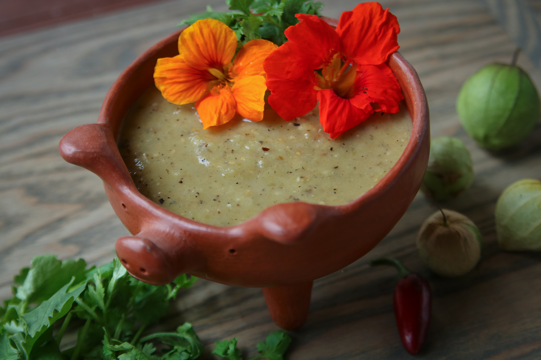 Salsa Verde gets its name from its principal ingredient: beautiful green tomatillos. With its bright citrus flavor, we’re surprised salsa verde isn’t more popular. However, we suspect this is due to the tomatillo’s relative obscurity outside of Mexico. And it’s not like tomatillos don’t grow well in northern climates: the plants in our Sullivan County, NY (Hardiness Zone 5) garden put all our other vegetables to shame!