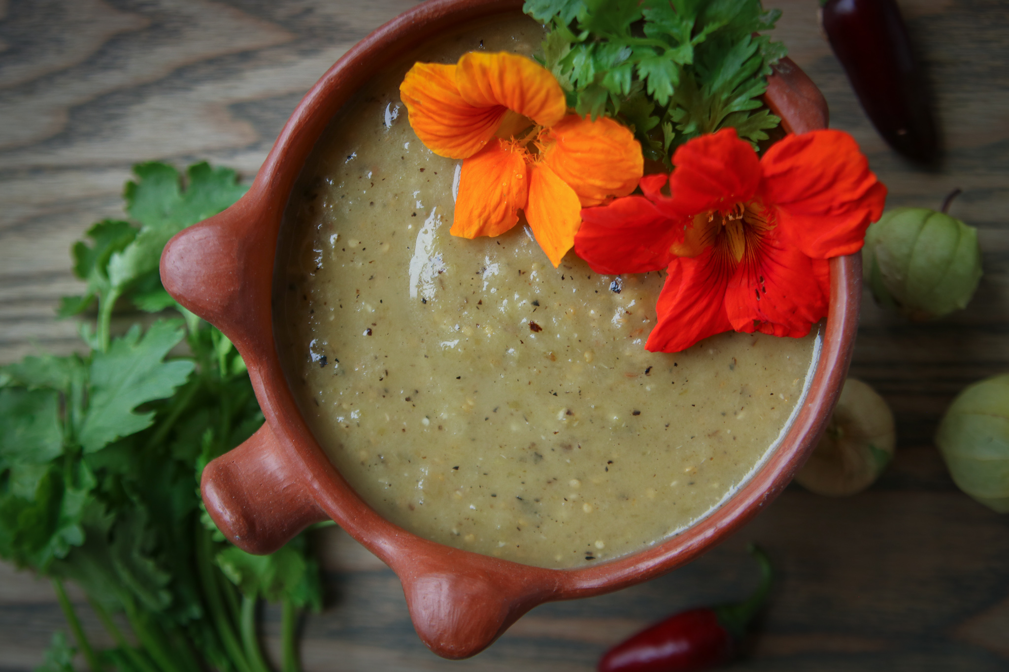Our salsa verde recipe is pretty simple and depends on our weekly harvest. While some folks prefer recipes with exact amounts, we urge you to trust your taste buds. Grilling or broiling the vegetables (yes, tomatillos are technically a fruit!) greatly improves the flavor of salsa verde.