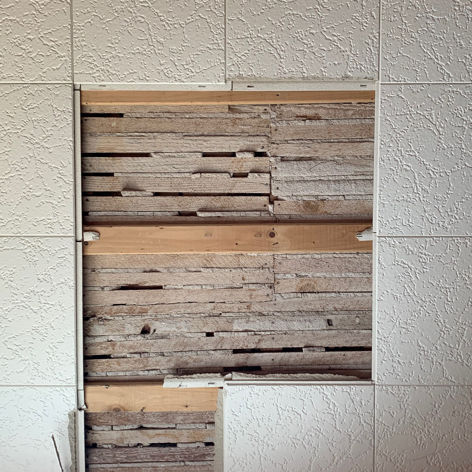 It’s already week two and we’re off to a bit of a slow start. Over the weekend we discovered that there was NO CEILING under the ugly acoustic tiles where in other rooms we’ve found original plaster walls in salvageable shape. Yep! No cracked plaster to patch, repair or replace. There are signs that there was a plaster ceiling but a few decades ago it probably just crumbled away with neglect. As much as we hate acoustic tile, its use had its reason. You’ll see these tiles used a lot in our region, and especially in old farmhouses. These tiles were usually a quick fix to help insulate the ceiling from our bitter winters, or an inexpensive alternative to repairing or replacing plaster. In the case of our room, we think it was installed to cover up the missing plaster ceiling. After some estimates we realized putting plaster back up was just too expensive, even for this small bedroom. So we’re going to drywall the ceiling and call it a day.